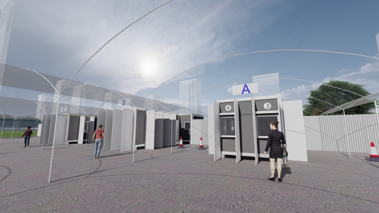 負責施工的新工處說明,在和衛生局研議後,板橋疫苗站先暫時作為採檢站,初期共規劃3個防疫採檢區,每區配置6個篩檢窗口,目前將先開設3個採檢窗口,預估最多一天可提供2000位民眾進行快篩。此外,考量民眾方便,除了提供夜間篩檢,現場也劃設汽、機車停車空間,並設置帳棚等候區,使現場排隊等候篩檢的人流,能維持「自我防護泡泡」的安全距離。