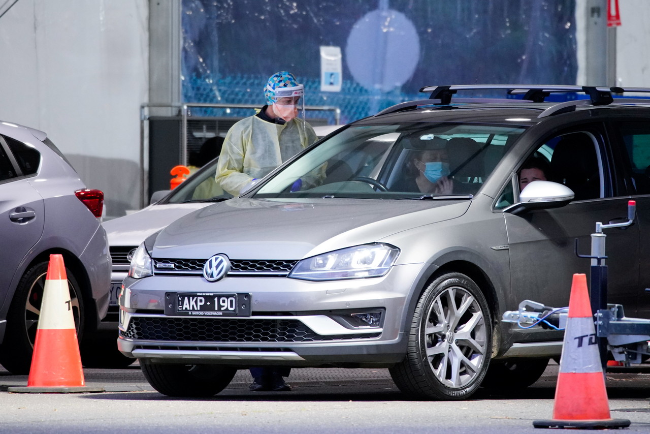 ▲澳洲維多利亞州宣布28日起進行為期7天的封城,墨爾本設立「免下車」篩檢中心。(圖/路透)