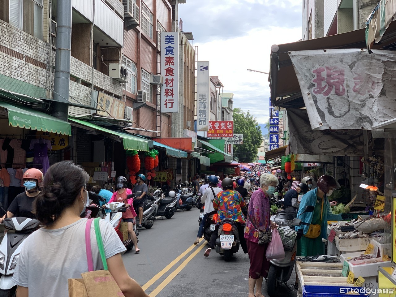 ▲南投市傳統市場人車潮略減,但仍是絡繹不絕。(圖/記者高堂堯翻攝)
