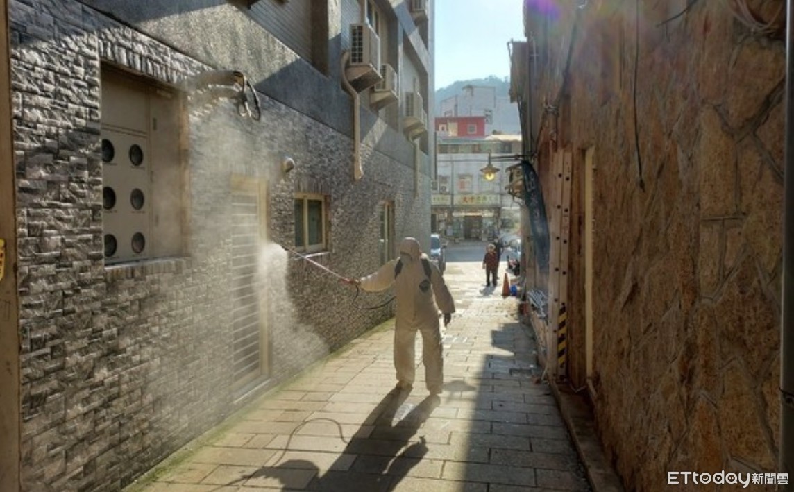 ▲連江縣環資局到足跡地點進行消毒作業。(圖/記者陳雕文翻攝)