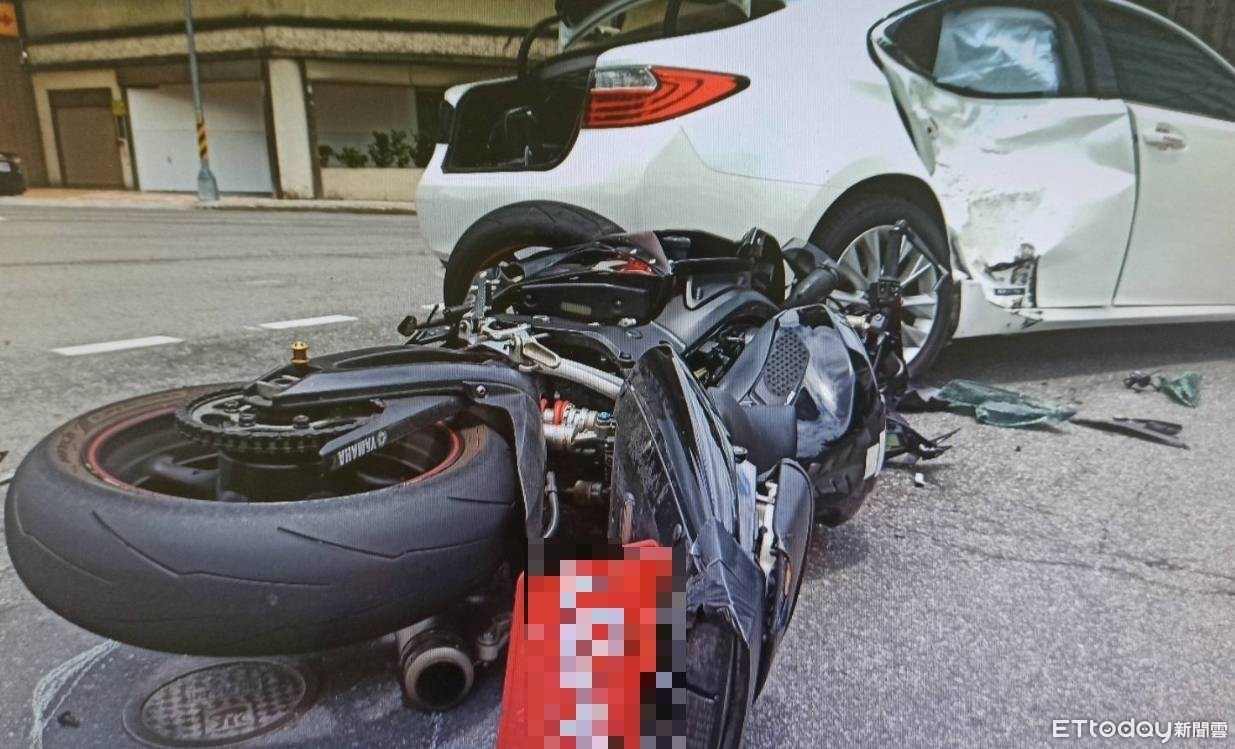 新北市新店區一輛紅牌重機1日上午11點多,沿環河路外側車道往台北市區方向高速行駛,闖紅燈來到中央路,攔腰撞上白色轎車,騎士當場噴飛,在空中翻了一圈後重摔落地,車禍雙方酒測值均為0,事故責任還有待調查。