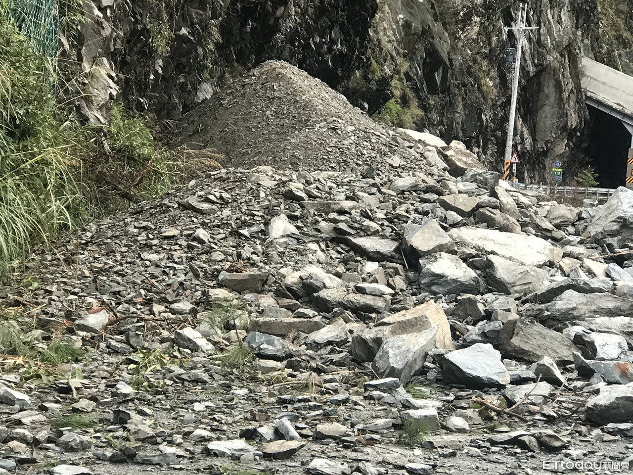 雖這兩天雨勢稍歇,原預計昨日就要搶通,但現場仍有落石持續落下,目前尚無法冒險清除,將待坡面穩定後盡速搶通,才開放民眾通行。