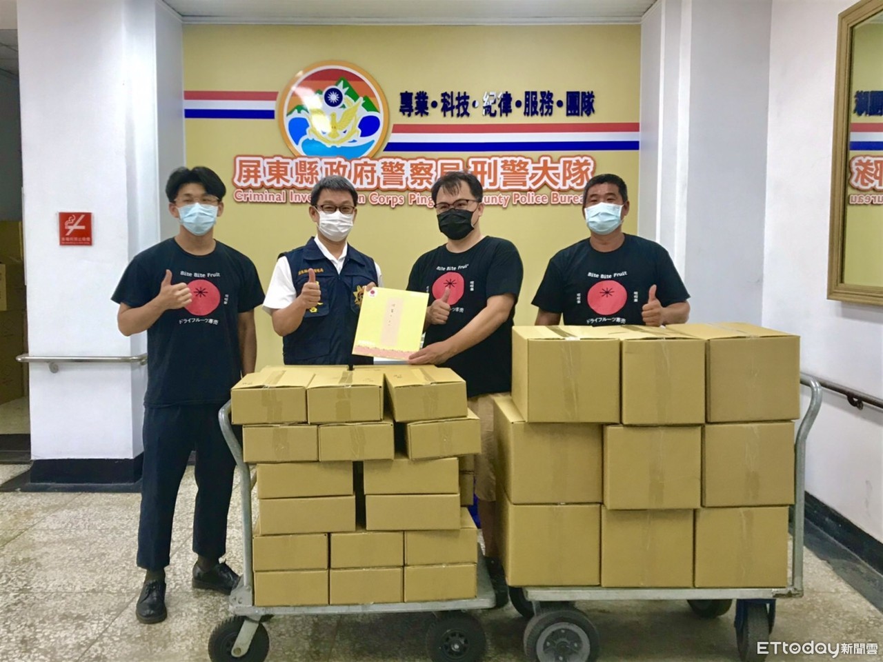▲萬丹鮮而美吳再松致贈果塔、茶餅等給縣警局刑警隊 。(圖/記者陳崑福翻攝,以下同)