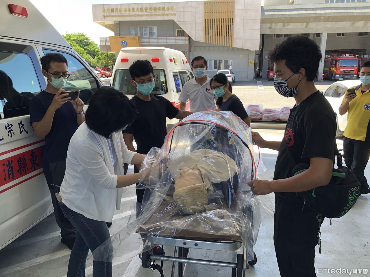 醫師賴佩芳表示,此次捐贈的防疫隔離罩除可加強救護及醫護團隊的自身防護外,同時提供患者多一層防護,也能減少在搬運及運送過程中發生患者飛沫噴濺的風險,而且預留了呼吸管道與自動心肺復甦機(LUCAS)的空間,只需要不到一分鐘的架設,救護人員就可以在有防疫罩的防護下,進行所有原本應該進行的救護作業,希望對台東縣的防疫工作能有所助益。