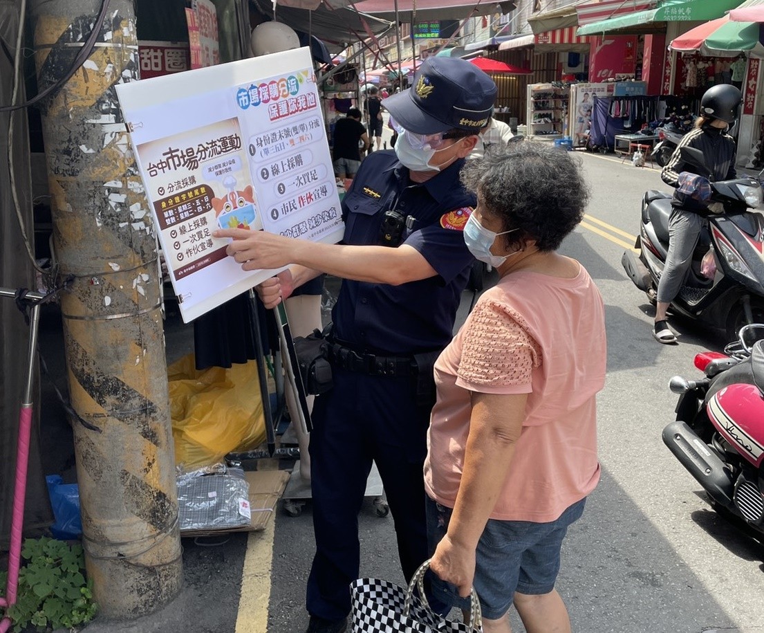 清水警分局上午編排警力前往各轄區市場,向攤販及採購民眾宣導落實採買分流、實聯制、戴口罩,同時對外溢的攤販也勸導應實施管制及各項防疫措施,經警方上午宣導市場採買新規定,民眾大都能瞭解及配合,未發現任何違規情事。