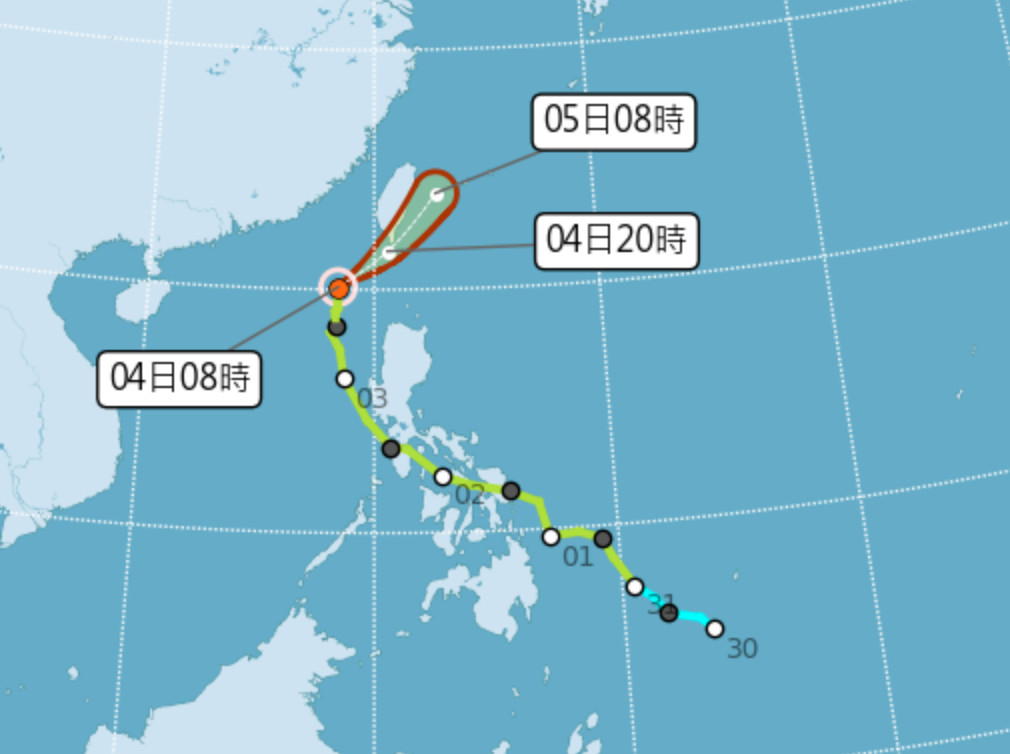 氣象局指出,颱風接近台灣過程中將逐漸減弱,預計今晚暴風圈有機會「擦到陸地」,將對南台灣帶來降雨,不過彩雲登陸機會小,放颱風假機率接近零。