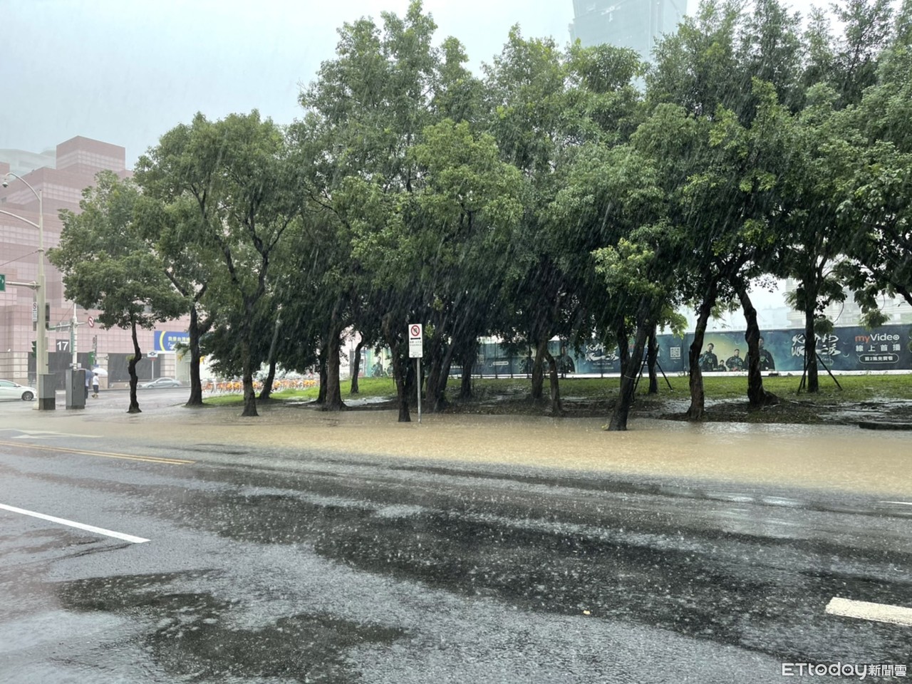 ▲突如其來的大雨造成信義區多處淹水。(圖/記者邱中岳攝)