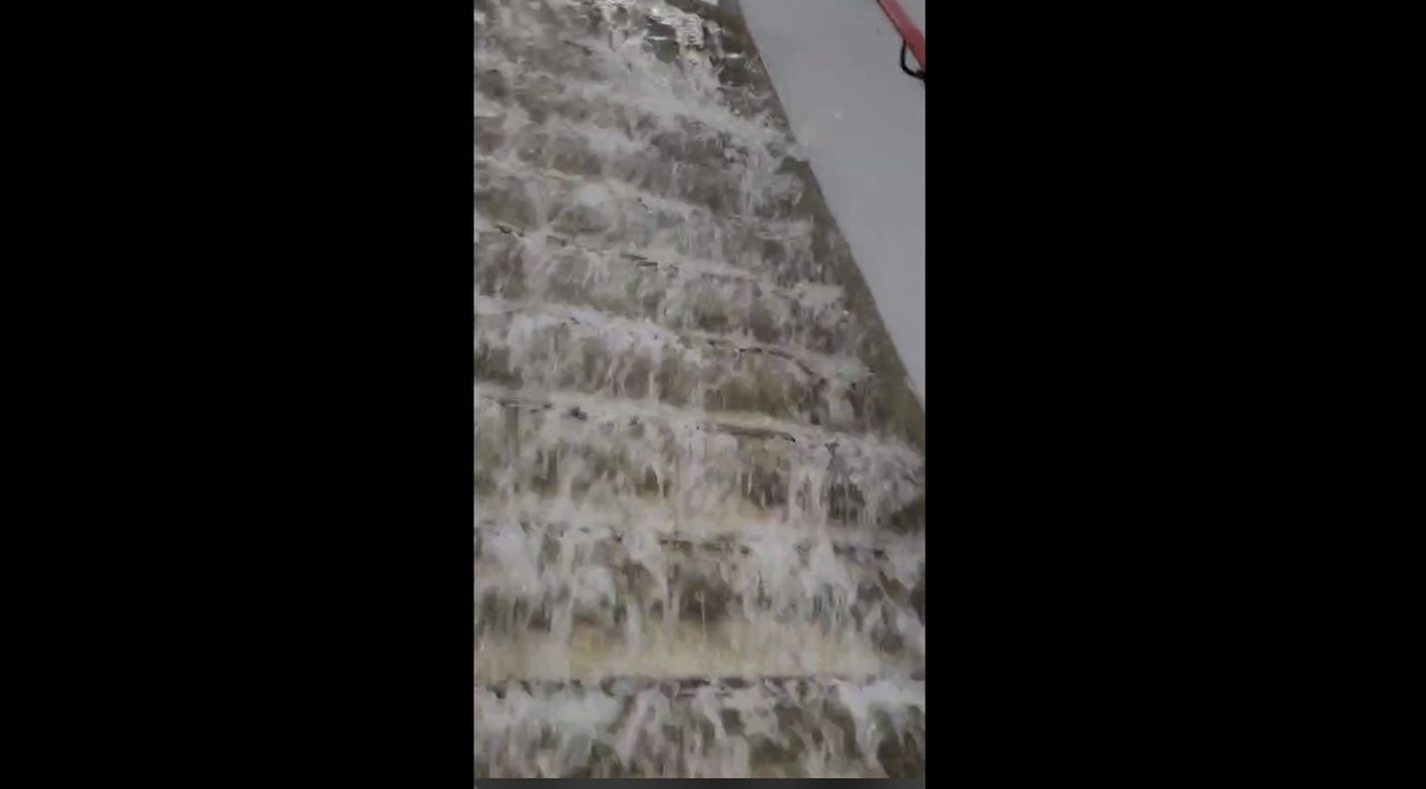 ▲仁愛路四段淹大水,湧入住宅地下室宛如瀑布。(圖/讀者提供)