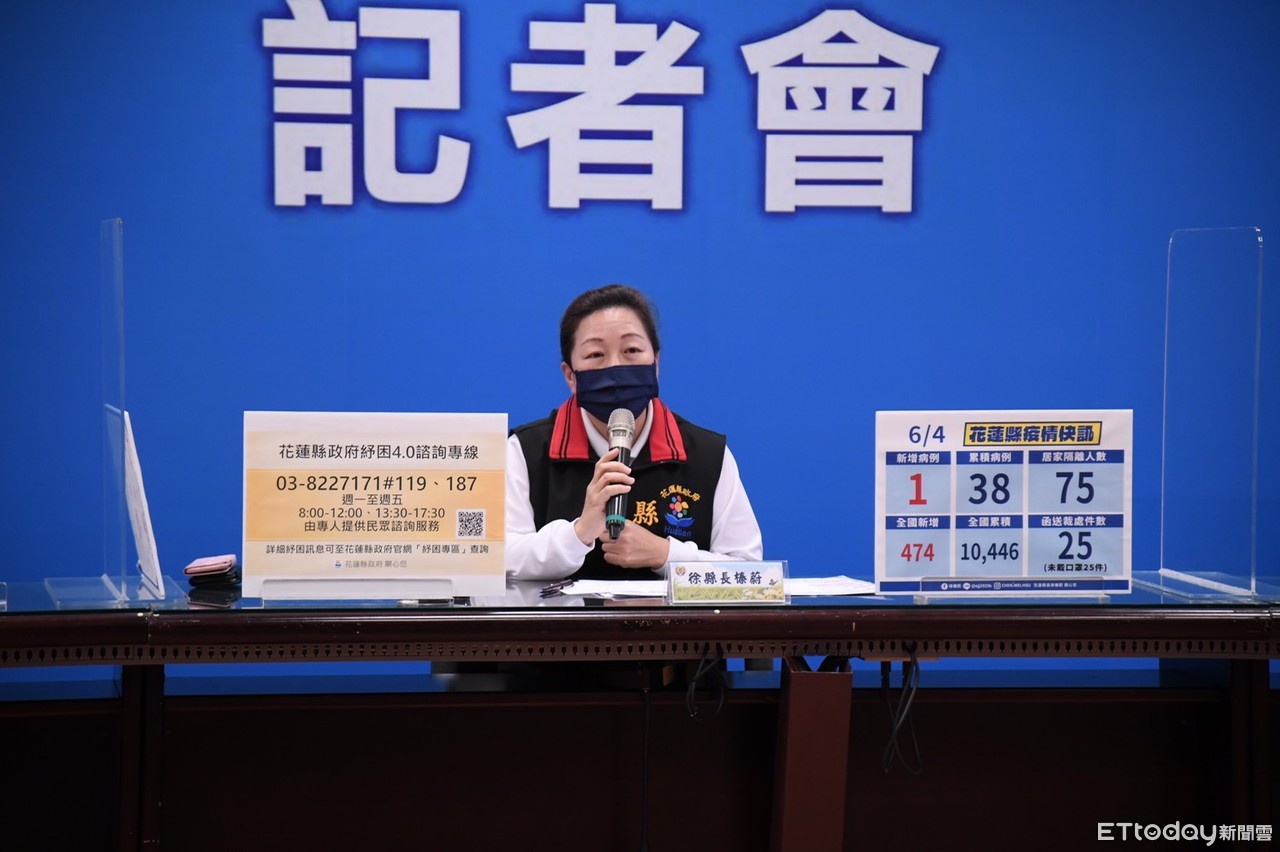 花蓮縣4日新增1例確診個案,案10364為60多歲女性,Ct值為18.7,為案6776之母親,5月26日被匡列後,隨即居家自主隔離,在足跡方面相當單純。防疫記者會上縣長徐榛蔚呼籲鄉親落實戴口罩、不共餐,保障自身及家人健康安全,並提前做好因應「彩雲」颱風的防颱準備。
