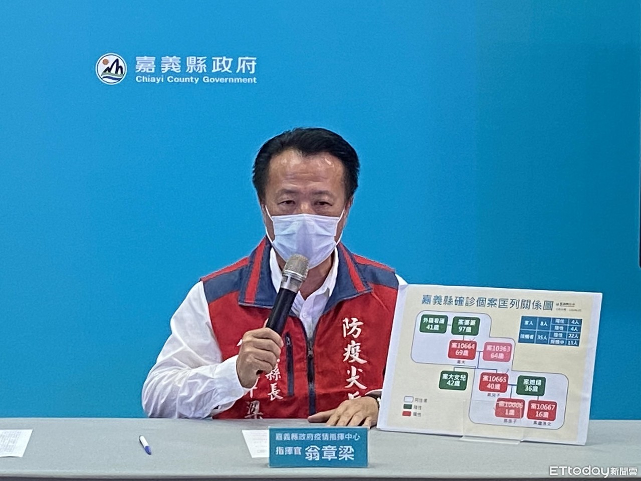 ▲嘉義縣縣長翁章梁說明家庭群聚再增確診。(圖/嘉義縣政府提供)