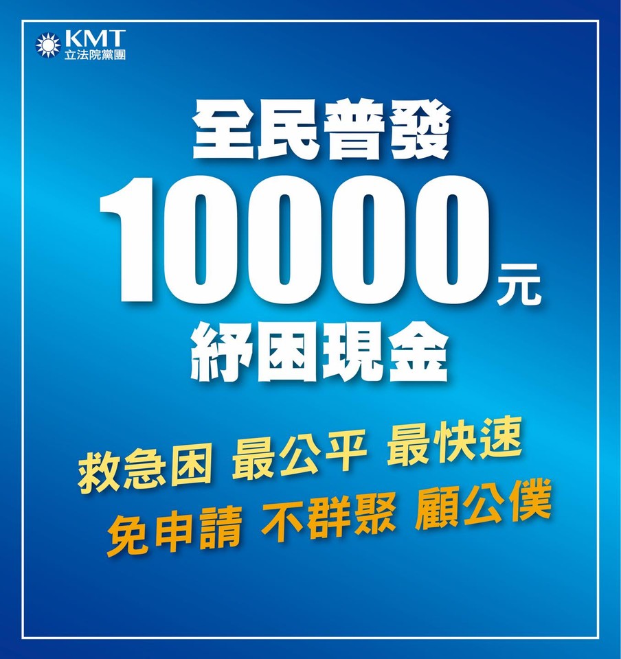 ▲國民黨呼籲普發1萬元紓困金(圖/翻攝自Facebook/國民黨立法院黨團)