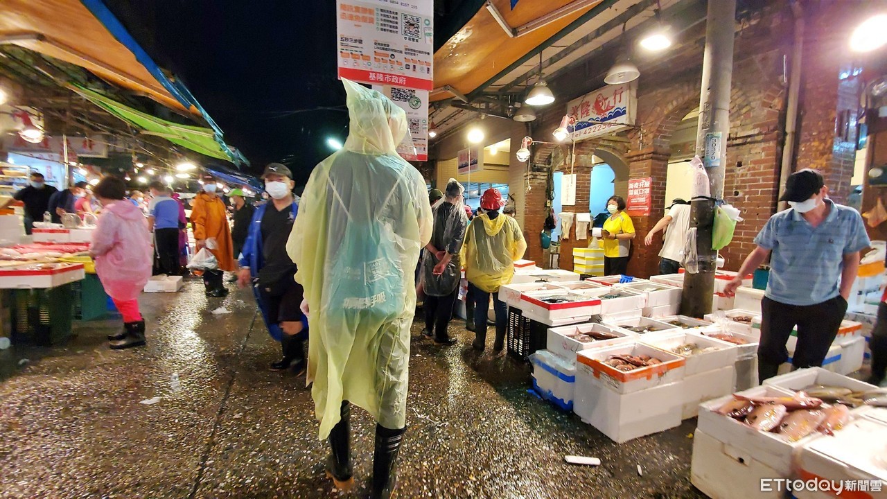 ▲基隆崁仔頂漁市實施「雙罩一套」高規格防疫。(圖/記者郭世賢翻攝,下同)