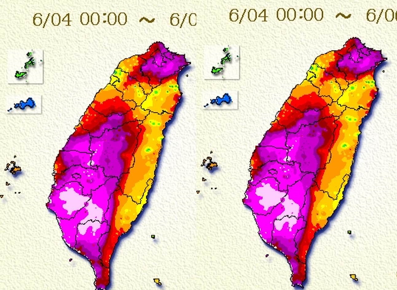 梅雨滯留鋒面持續影響,中央氣象局長鄭明典貼出6/4至6/6上午8時的3天累積雨量圖,「很平均!雨勢開始緩和,但是土石含水飽和,後續更要小心各種意外,尤其山區。」