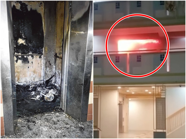 ▲火災後電梯內面目全非,電動滑板車也燒到只剩殘骸。(圖/翻攝自Facebook/新加坡民防部隊)