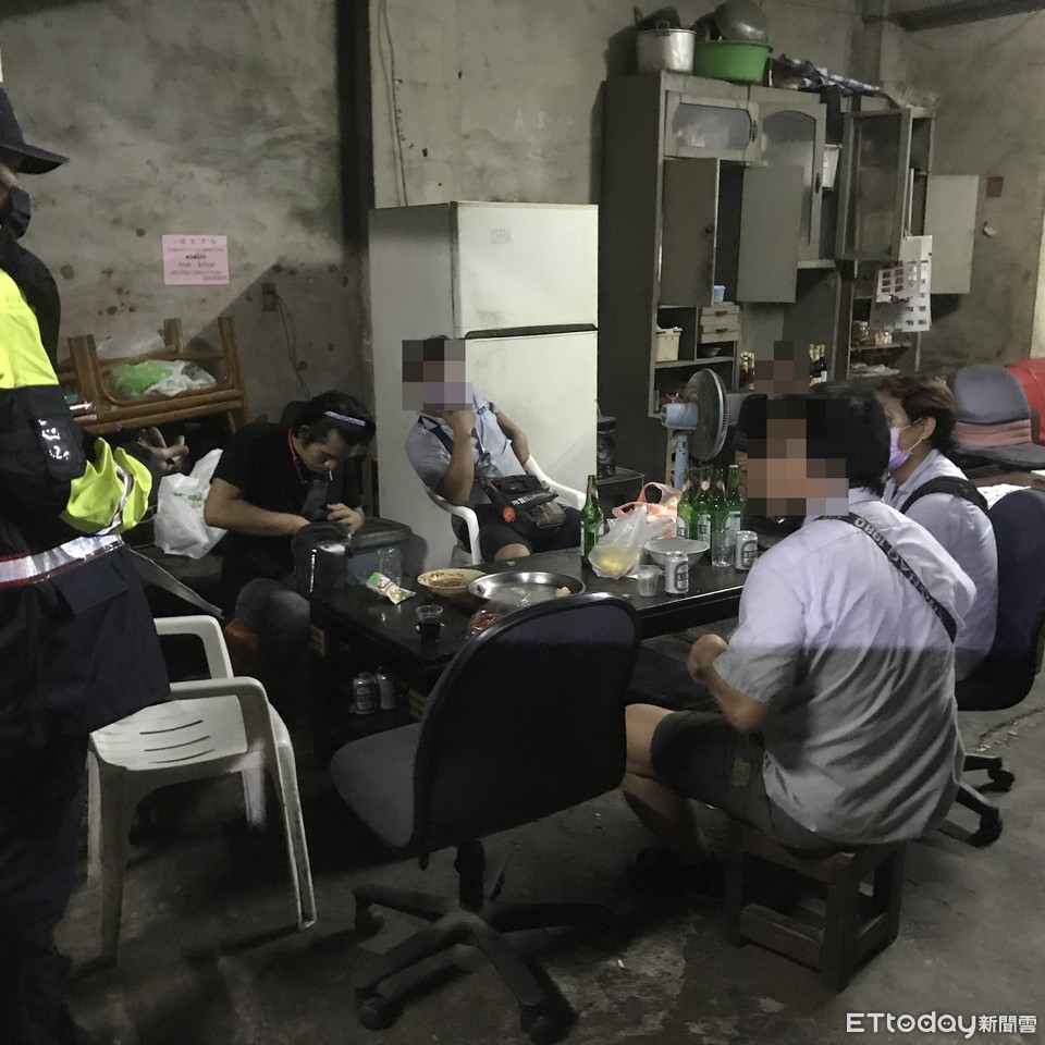 ▲台南市警歸仁分局查獲8名泰籍移工涉嫌聚賭博喝酒群聚,依法嚴辦,並送請衛生局裁罰。(圖/記者林悅翻攝,下同)