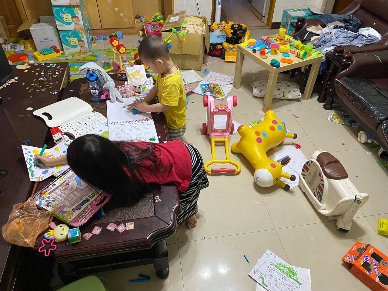 一名二寶爸在臉書社團「爆怨2公社」貼出照片,經過三周的居家防疫後,客廳幾乎已經面目全非,地板到處都是散落的玩具,連行走空間都沒有,沙發下也被丟滿小朋友雜物,即便在如此混亂的環境下,兒子女兒照樣能拿著蠟筆專心地畫畫,孩子看起來很開心,不過爸媽可笑不出來,「再不讓這兩隻滾去上學,我家會成垃圾堆。」