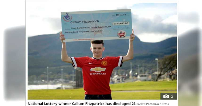 居住在英國北愛爾蘭的男子卡勒姆(Callum Fitzpatrick)於2014年時以16歲之姿成為樂透頭獎39萬元英鎊(折合新台幣約1528萬元)的得主,這也讓他成為英國史上最年輕的樂透頭主。而在7年之後,突然傳出他逝世的消息。
