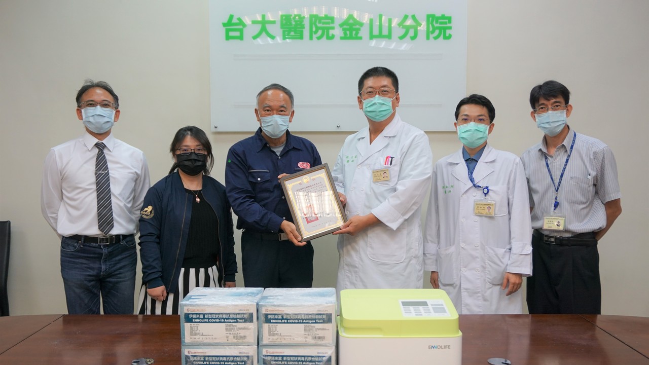 ▲新光鋼鐵捐贈「儀器型抗原快篩檢測」,力挺台大金山分院抗疫醫護。(圖/台大醫院金山分院提供,下同)