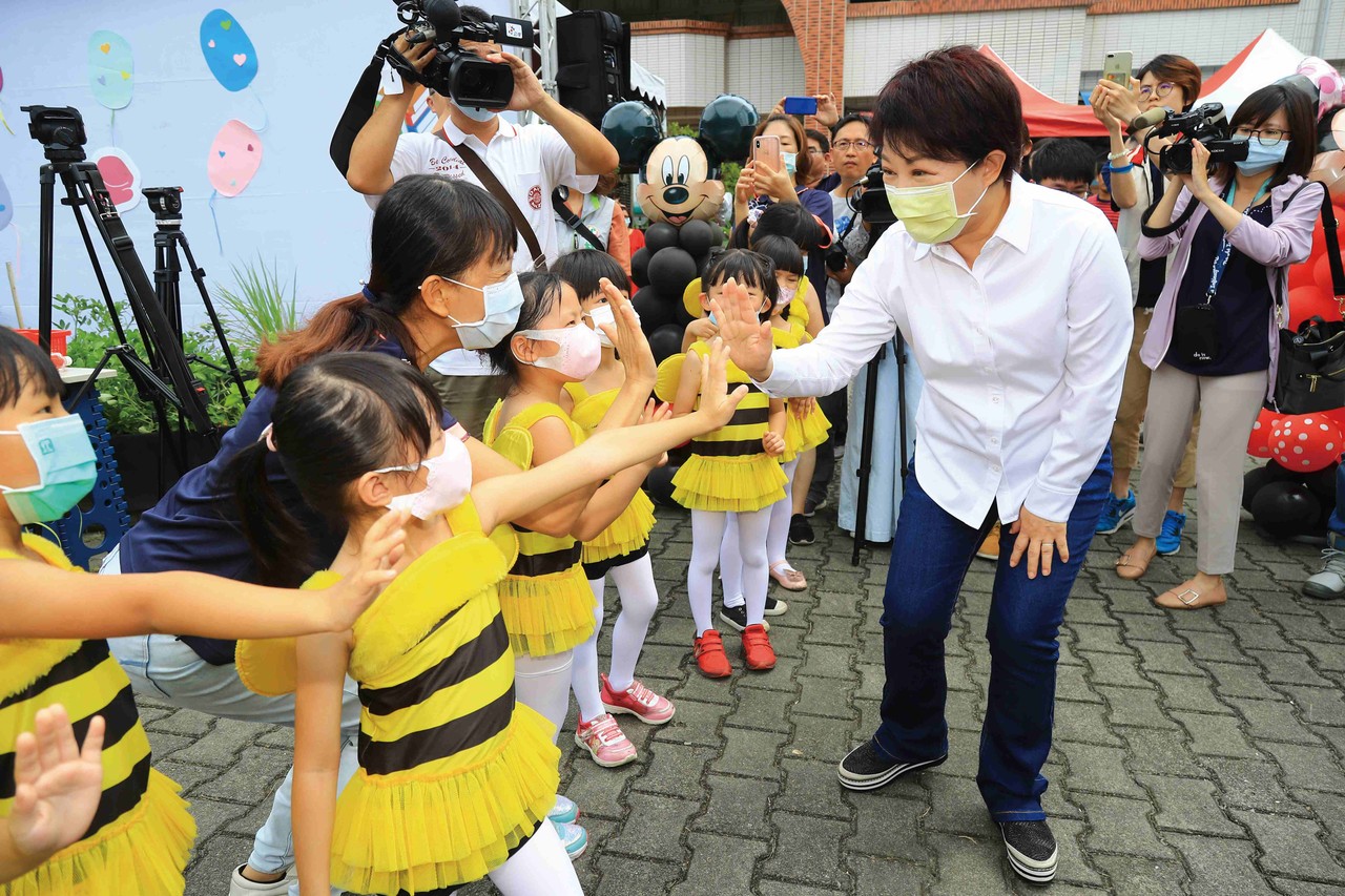 ▲霧峰國小學童與盧秀燕市長熱情互動。(圖/台中市政府社會局提供)