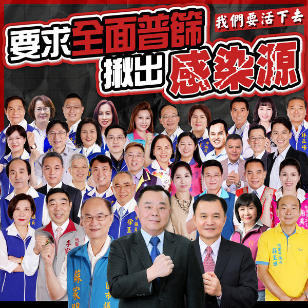 疫情持續嚴峻,桃園市議長邱奕勝8日於臉書向中央呼籲,不要再佛系防疫,應全面普篩,克服萬難儘速全面普篩,揪出隱形傳播鏈的感染源,達成社區清零目標。議長邱奕勝並PO出「要求全面普篩、揪出感染源、我們要活下去」醒目字眼,表達全民心聲。