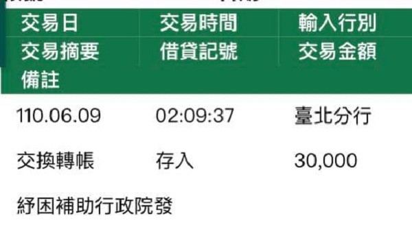 ▲民眾貼出紓困金入帳截圖。(圖/翻攝「爆廢公社」臉書社團)
