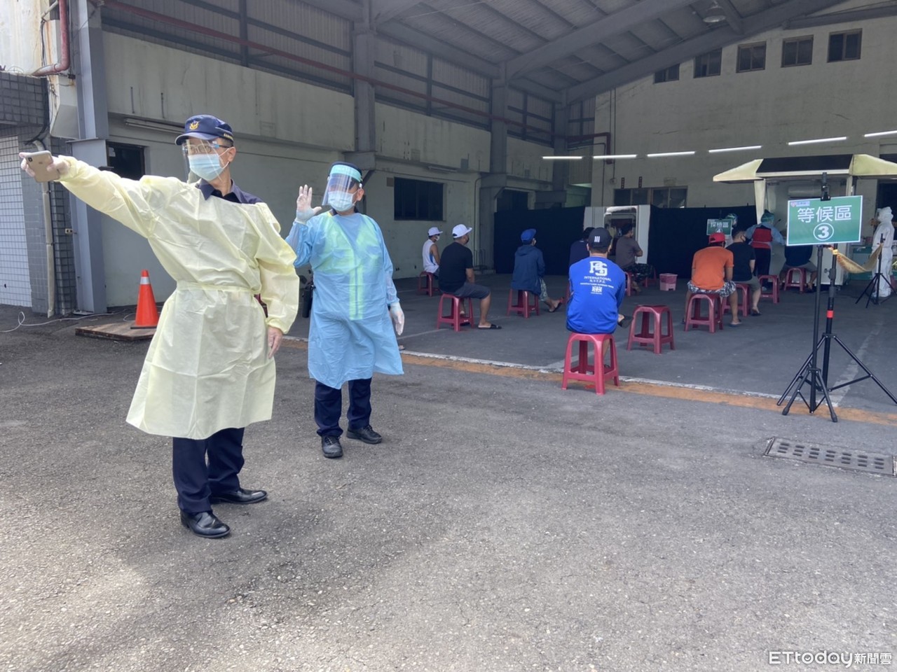 ▲內埔工業區9日啟動外籍移工快篩站,內埔警坐陣嚴防滋擾 。(圖/記者陳崑福翻攝,以下同)