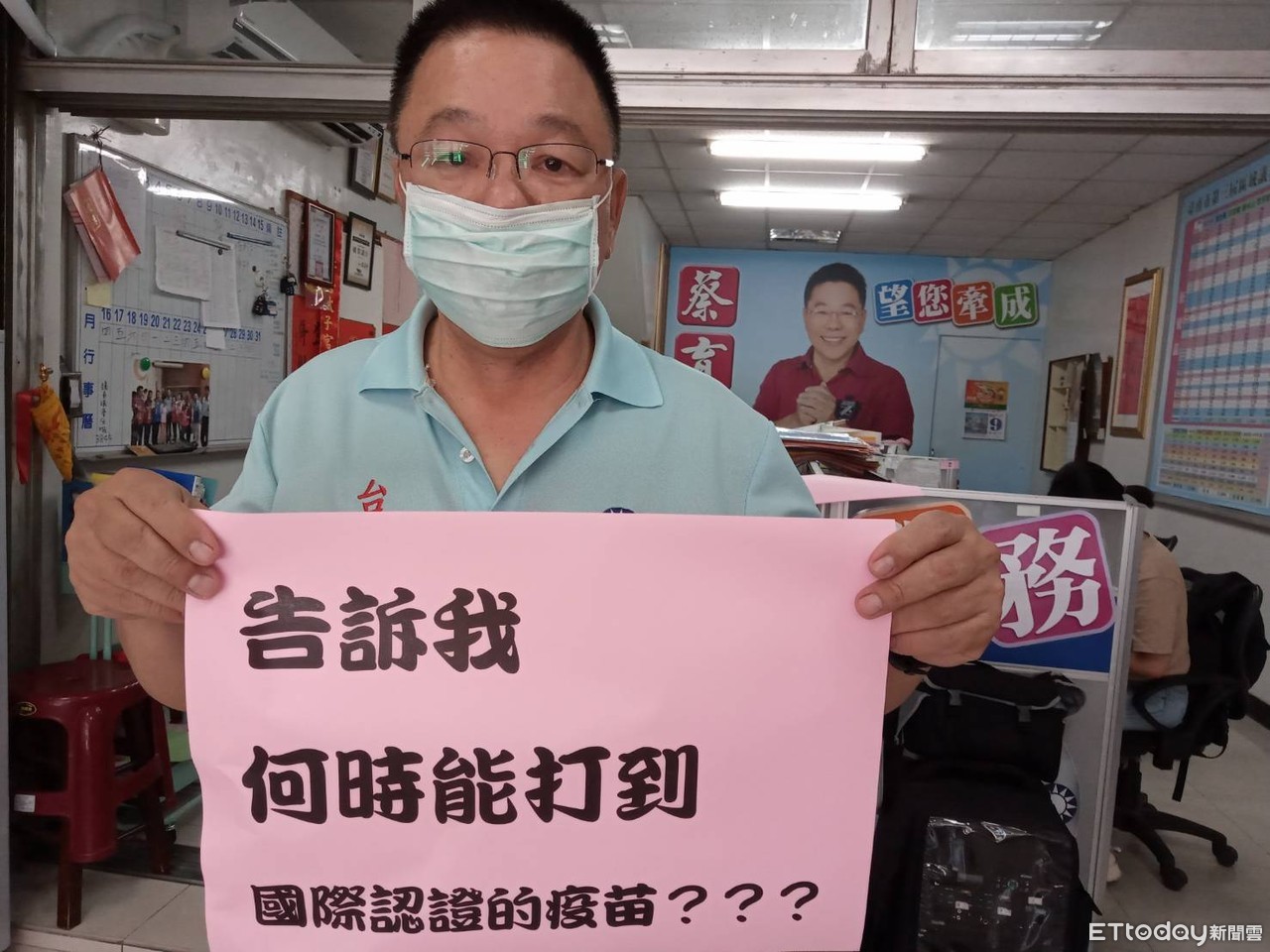 要打國際認證疫苗、要紓困的陳情電話,如滾雪球般湧入台南市議會國民黨團,黨團要求民進黨中央正視民怨怒火將炸鍋,市議會國民黨團指出,國產疫苗用的是沒有通過國際核准的蛋白質次單位疫苗,國際不認證,打完國產疫苗,可以出國經商、讀書、交流和旅遊嗎?黨團要求黃偉長動用緊急第二預備金買國際認證疫苗救市民。