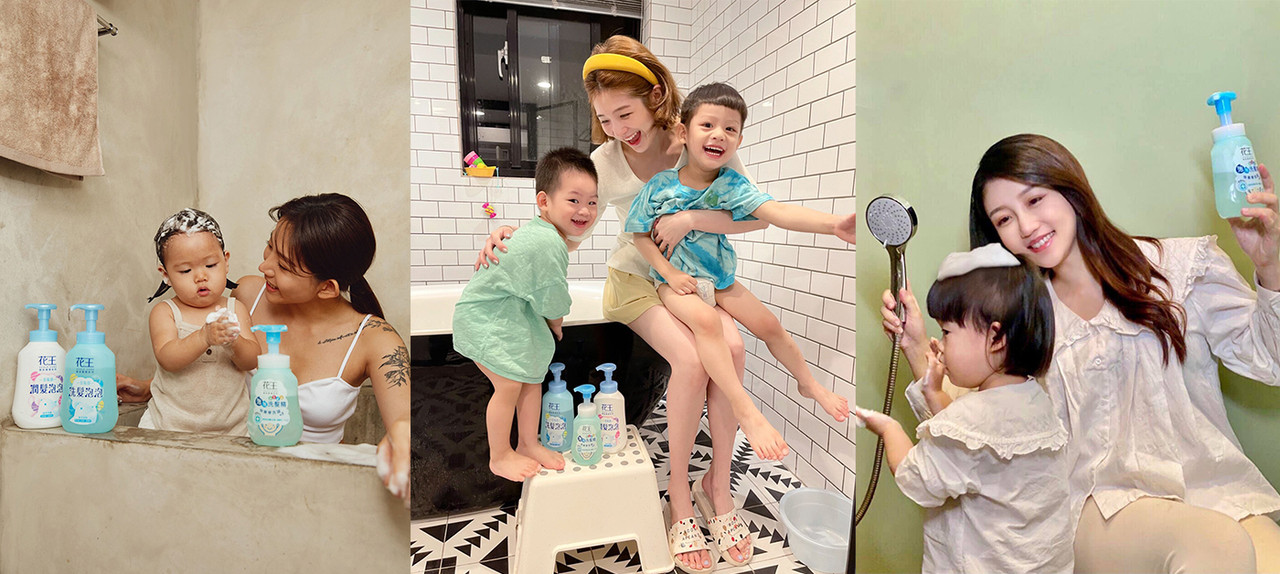 ▲人氣網紅分享花王洗髮泡泡好玩又好洗,讓家中寶貝超開心。(圖/取自陳艾琳、聖小柔、高敏敏粉絲專頁)