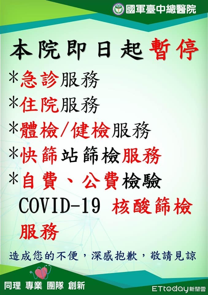 ▲國軍台中803總醫院突然宣布關閉急診、住院服務。(圖/翻攝院方臉書)