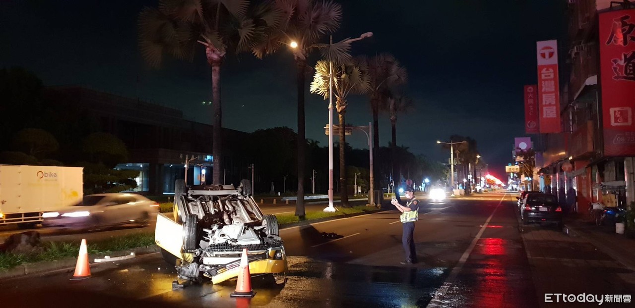 屏東縣政府警察局交通隊9日晚上21時50分接獲報案,指屏東市自由路512號發生計程車撞中央分割島,導致計程翻覆事故,車興嚴重受損,警方獲報趕往處理,發現肇事車輛,找不到駕駛,經查訪,才發現陳姓計車司機在事故後自行逃生,離開現場。