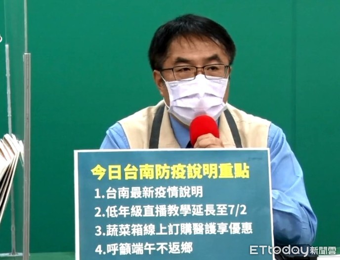 ▲台南市長黃偉哲表示目前端午可能返鄉的人約3100人,以1%確診率,約有30、40人可能是確診者,所以他籲請返鄉民眾能主動前往篩檢。(圖/記者林悅翻攝,下同)