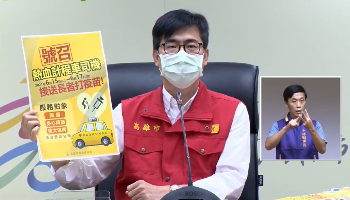 6月15日起將有新一批AZ疫苗開打,高雄市政府規劃75歲長者為第6類施打對象。考量長輩移動不便,市長陳其邁10日召開防疫記者會,要號召熱血小黃運將加入接送長輩打疫苗的行列,車資會由市政府補貼。
