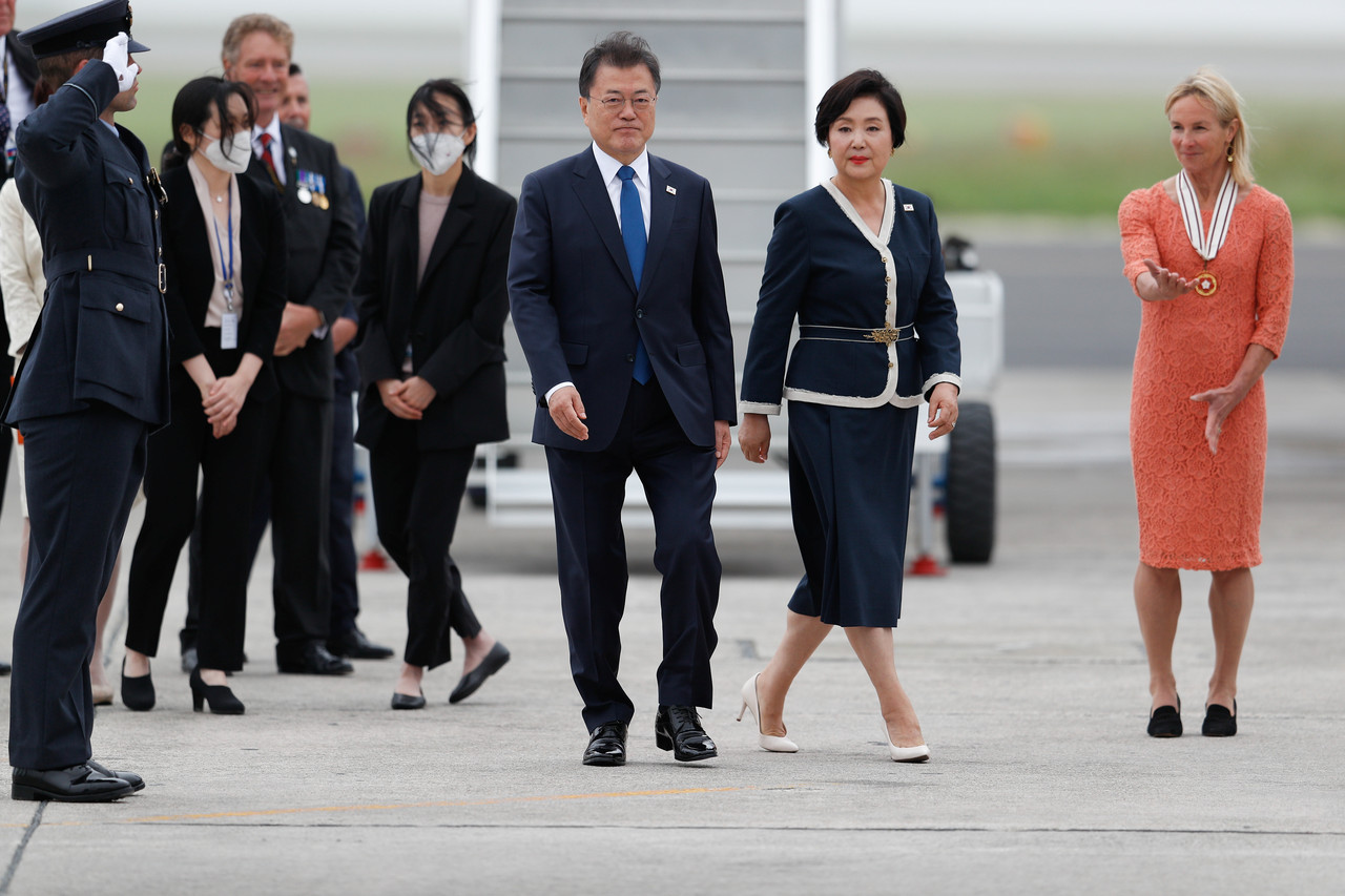 ▼文在寅夫婦抵達英國康瓦爾郡,準備出席G7峰會。(圖/達志影像)