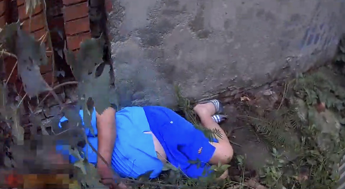 ▲警捉民宅群聚打麻將,牌咖逃出屋外,躺草叢邊試圖「以草掩身」 。(圖/記者洪靖宜翻攝)