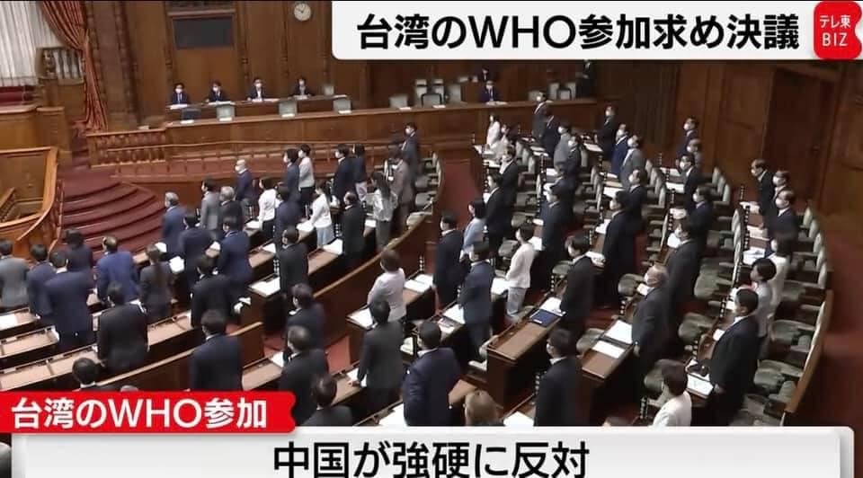 ▲日國會議員全體起立支持台灣參與WHA。(圖/翻攝謝長廷臉書)