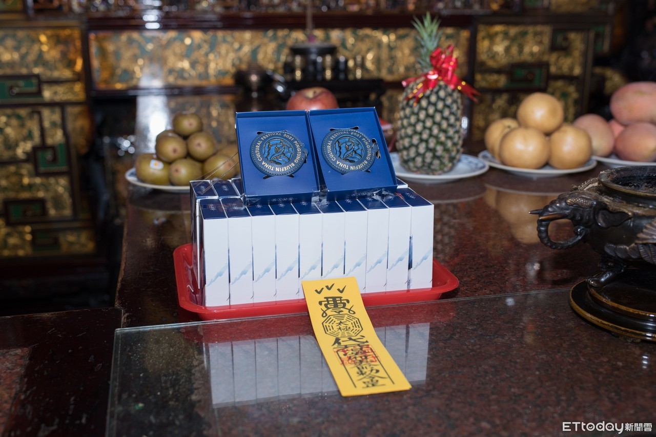 ▲黑鮪魚文化觀光季文創品「屏安御守」東隆宮王爺加持 。(圖/屏東縣政府提供,以下同)