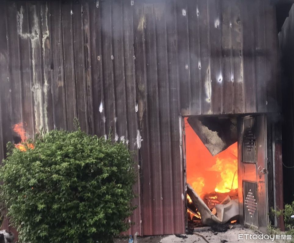 ▲台南市關廟區南雄路一段1處鐵皮屋,12日下午發生火警,消防局出動17車40人前往搶救,幸好無人員傷亡。(圖/記者林悅翻攝,下同)