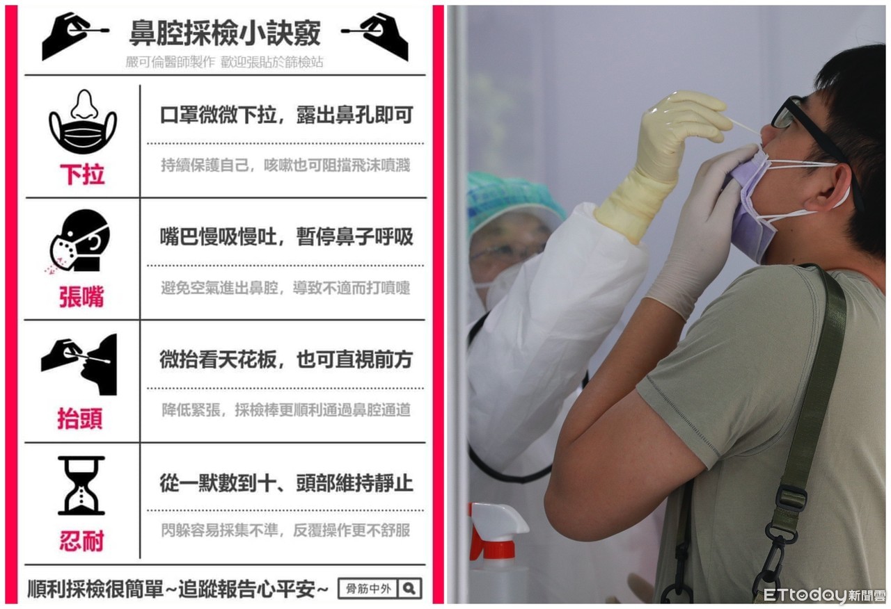 台灣疫情爆發,近日許多民眾進行快篩及PCR採檢,但不了解過程難免有些緊張,甚至感到不舒服,台中市光田綜合醫院骨科醫師嚴可倫特別整理製作了「鼻腔採檢小訣竅」,幫助民眾更快進入狀況。