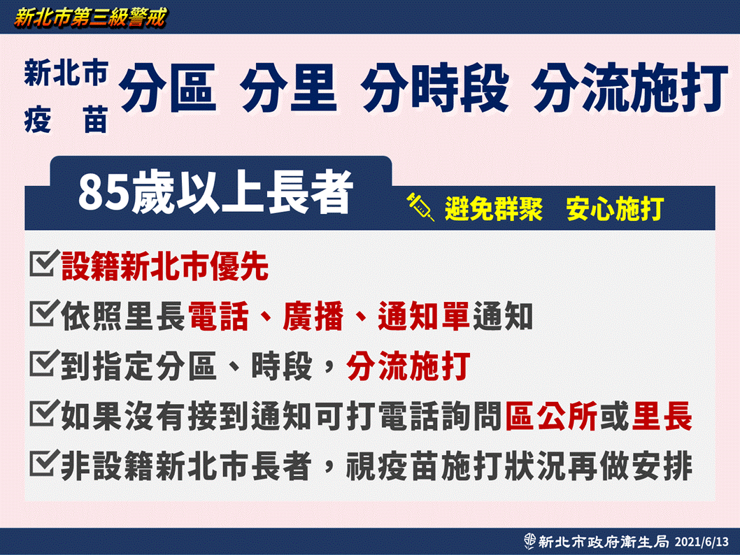 ▲0613新北疫情:85歲以上長者施打序說明與地點。(圖/翻攝直播)