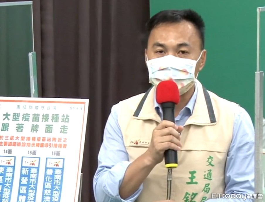 台南市交通局長王銘德表示,配合台南市疫苗接種作業,交通局已協助於台南市三個大型疫苗接種站(東區復興國中、新營區體育館及善化區慈濟聯絡處)周邊設置完成46面指示牌面,希望市民可以依照指示行車、注意行車安全。