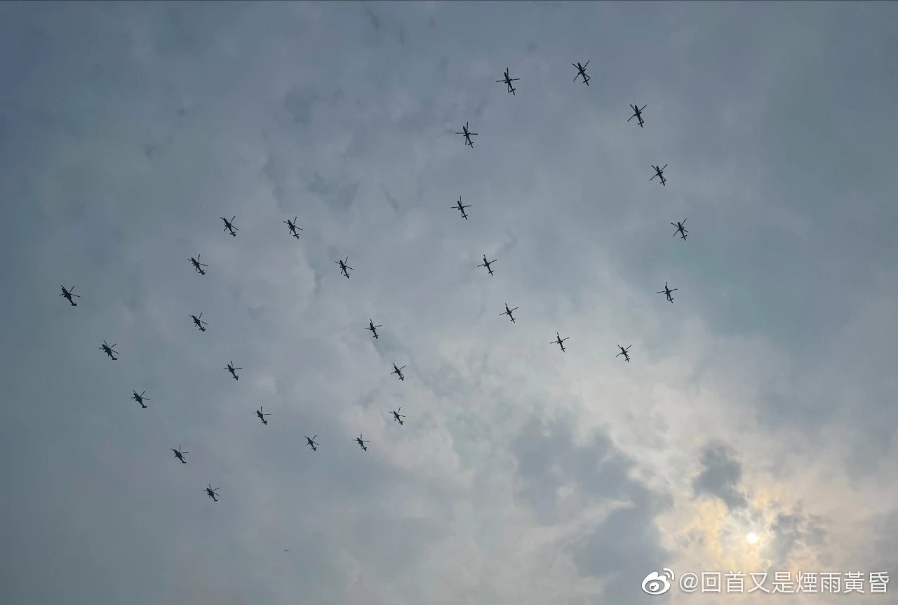 此外,也有北京市民發現,預演當日有多架殲-20戰鬥機出現在北京的天空,還有武裝直升機排出「100」及「71」的字樣,象徵中共建黨百年。