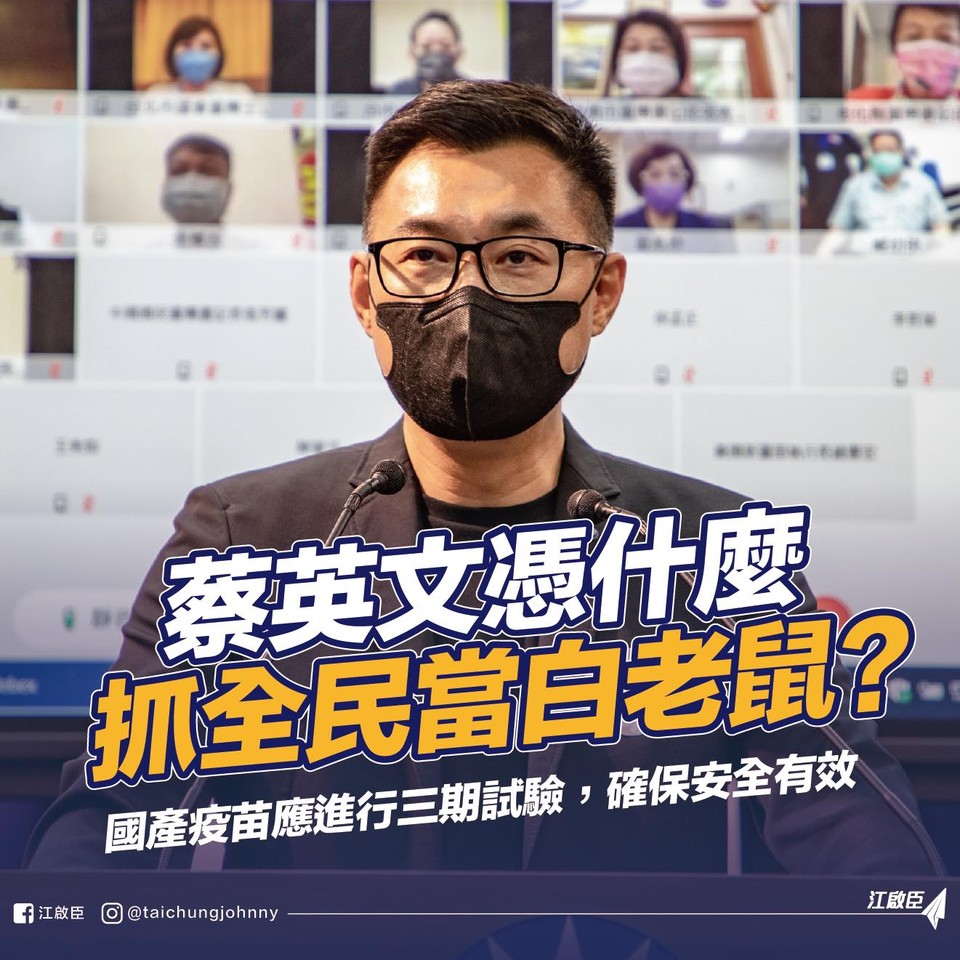 ▲江啟臣怒批,蔡英文憑什麼抓全民當白老鼠。(圖/翻攝自江啟臣臉書)