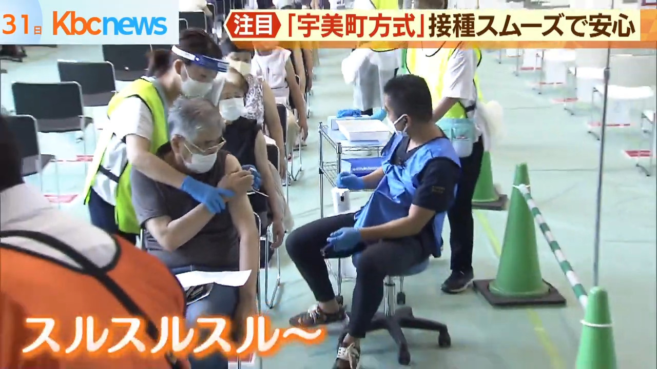 ▲日本發明「宇美町式」打疫苗。(圖/翻攝KBC NEWS YouTube)