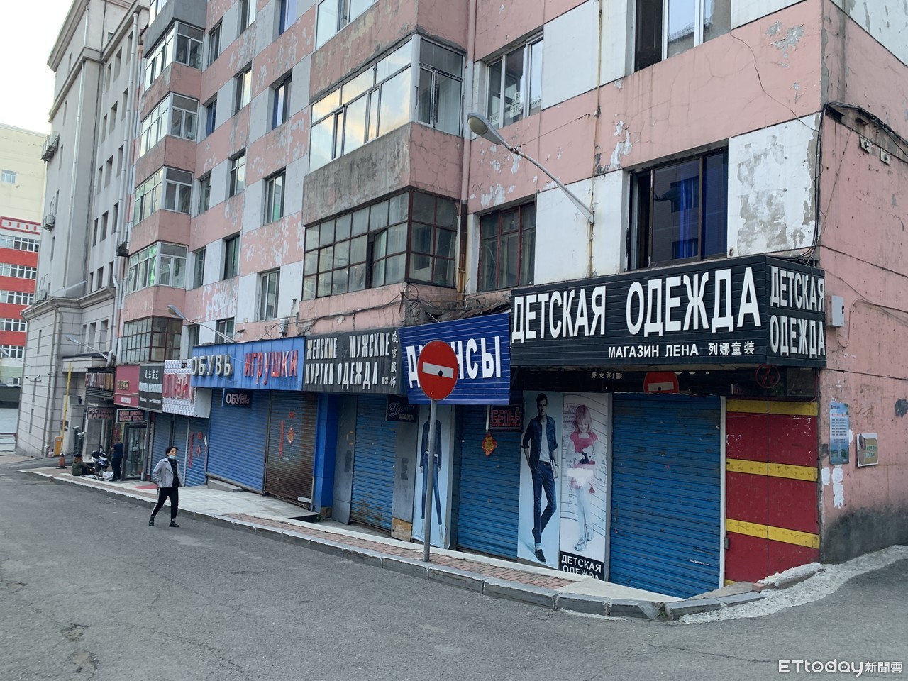 ▲黑龍江省綏芬河市,街上商店掛著俄語招牌,但因疫情影響,暫時難有俄羅斯人前來消費。(圖/記者陳政錄攝)