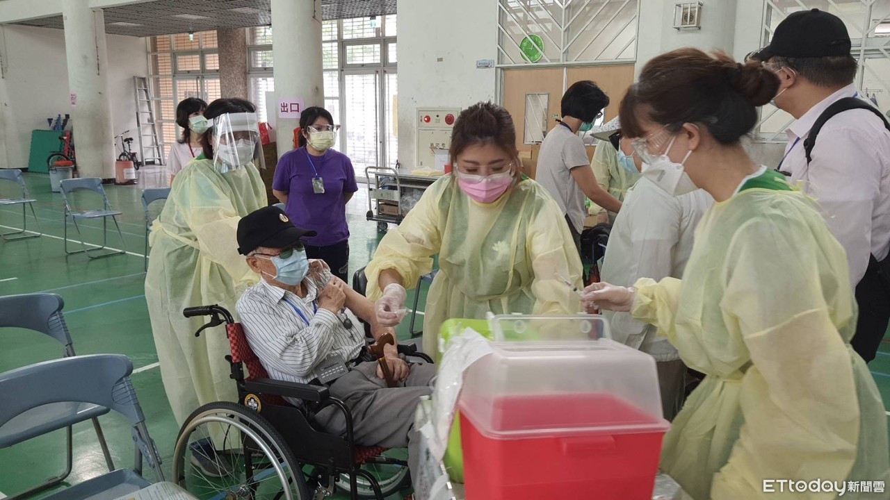 ▲高雄市鳳山國中,長輩接受施打疫苗 。(圖/記者吳奕靖翻攝)