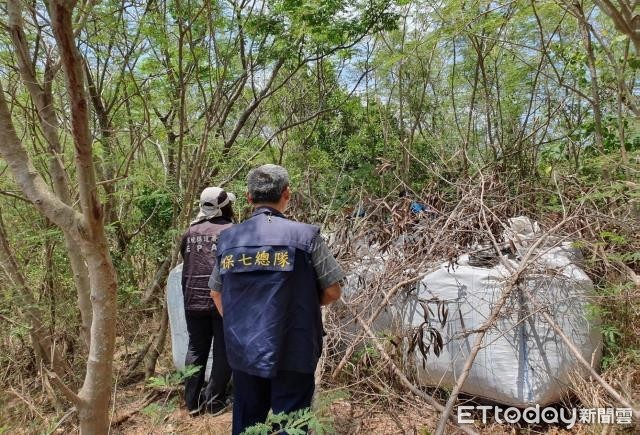 保七總隊近期接獲線報,有不肖環保業者將廢棄物隨意丟棄,屏東林管處表示,有數包裝有電源開關、漏電斷路器等廢棄物太空包被丟棄在國有林地,隨即掌握高雄大寮一家地下工廠負責人,竟然將電路板、晶片隨意掩埋,甚至還在倉庫堆放數十包太空包以及零組件。