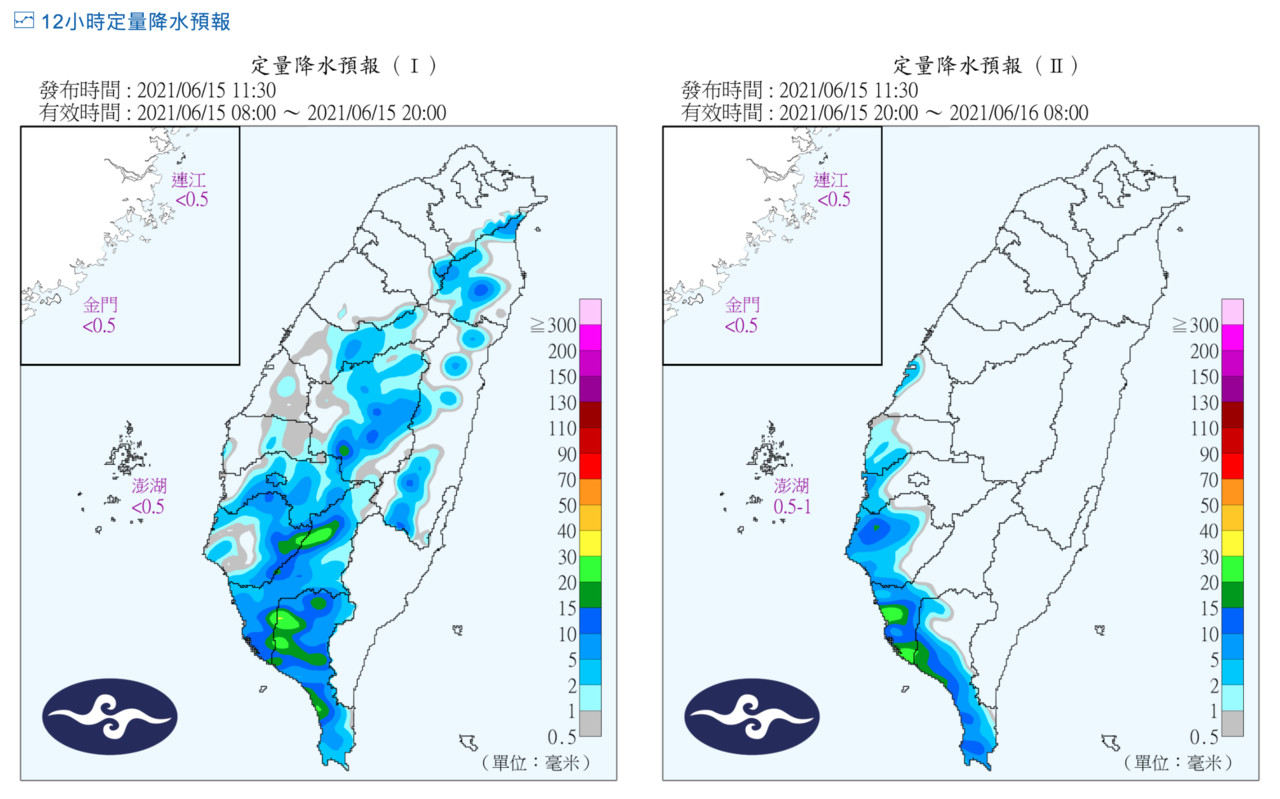 氣象局表示,今天受西南風影響,中南部天氣較為不穩定,出現短暫陣雨或雷雨的機率高,清晨至上午的降雨主要在沿海及平原,中午之後則轉為以內陸及山區為主,整體而言,南部降雨範圍較廣,中部較為局部,至於北部及東半部則為多雲到晴,午後東部、東北部地區及北部山區仍有零星短暫雷陣雨。