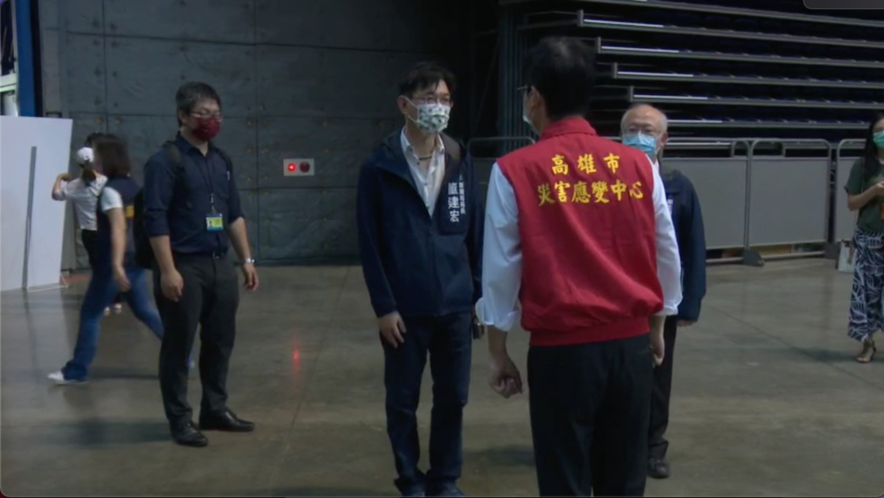 ▲高雄市長陳其邁在巨蛋體育館忍不住動怒,當場罵兩名局長,圖右為衛生局長黃志中 。(圖/高雄市政府提供)