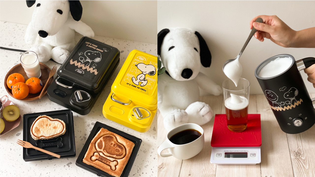 愛喝咖啡的人也絕對不能錯過首次推出的SNOOPY「電動奶泡機」,可冷熱兩用,低分貝快速攪拌出綿密奶泡咖啡;「多功能料理機」簡單做出三明治、荷包蛋、鬆餅,另附上SNOOPY造型烤盤;「復刻黑白圓形康寧鍋」搭配經典的SNOOPY黑白設計,可一鍋多用。