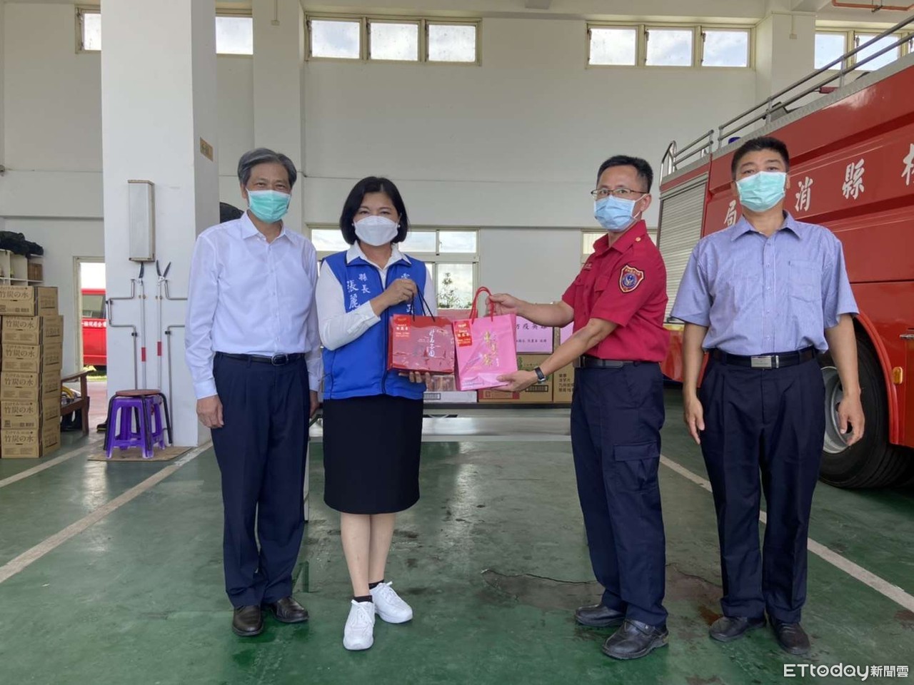 ▲縣長張麗善於今日中午往北五消防分隊(專責防疫隊)慰勞防疫英雄,並致贈水果、飲料及乾糧。(圖/記者蔡佩旻翻攝)